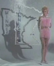 Miss January poses as a calendar girl for the month of January, who represents the state of Minnesota for Matt Helm (Dean Martin), who is a photographer.