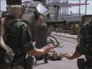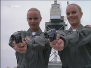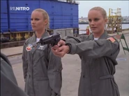 The twins Miss Kassidy and Miss Kari are robbers why steal high-tech helicopter, the Choctaw L-9, from an air force base. The Team Knight Rider are looking for the helicopter until their new boss Maddox stops them. They later discover that Maddox is the boss of the twins. At the final fight the twins try to flee but are confronted by Trek and Erica. Trek throws his bow tie at one of the twins and the babe receives an electric shock from it and goes down. Erica pushes the other twin against a wall and knocks her out with a single punch. Both twins are taken away in handcuffs.