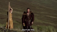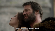 His alliance with Morgan is amicable as he seems content to back her plans with his army in exchange for sex and marriage, but the agreement goes sour when Morgan accuses him of becoming complacent in his new found power and loses her temper. He doesn't take well to being made a fool out of in front of his men and ties her to a post in the middle of a meadow overnight. He says that they would re-evaluate their agreement in the morning when she had learned her place - if the wolves didn't get to her first. This seems to frighten Morgan as the next morning when he came to collect her, she was fearful of him. Yet, he showed an odd bit of affection for her as he explained his new plan for taking out Arthur, and then jokes that she had been a good girl and if she was lucky he would let her ride on the back of his horse.