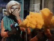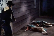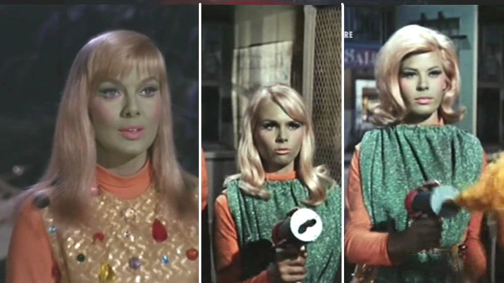 The three women "aliens" emerge from a supposed UFO which has been "forced to land" on the outskirts of a western town. They claim to be travelers from Venus, though are actually part of an audacious plot to steal the federal government gold being kept temporarily in the town, guarded by agents James West and Artemus Gordon (Ross Martin), as well as some soldiers. Morn decoys Jim at a picnic, while in town the other girls are busy knocking out Arte and the guards with their "outer space" gas guns and helping male villain Ben Victor (William Windom) take the government gold from the safe - carrying it away in a wagon along with a kidnapped Artemus Gordon. After also taking Jim prisoner, the villains plan to blow the 2 federal agents up in the phony UFO.