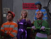 Moth is a sexy and beautiful blonde in her 20s, who wears a purple catsuit and cape. She is a typical henchwoman and girly, interested in being rich and excited to commit crime but very cowardly. Like a real life Moth..she went too near to a flame..and got "burned!"