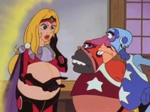 It is hard to believe that this was a Saturday morning cartoon in japan, the humor is very slapstick and the plot very simplistic and formulaic, but there are also a lot of sex jokes and nudity. Muujo is far from the only antagonist in the "Time Bokan" series to get this treatment.