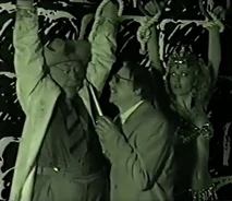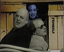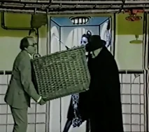 Next we see two of Pola's henchmen Boris Badinov and Caspar Cutler (John Bird), carrying a large wicker box. A body is moving inside it, and Pola thanks the boys for the information of the Commander.
