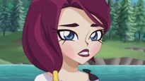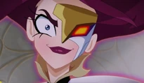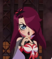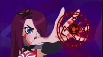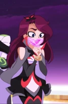 Praxina (Kelly Sheridan in English, Karine Foviau in the original) is the main villain of the French Children’s cartoon LoliRock. Praxina is a very affirmed person determined to obtain the Oracle Gems and destroying the five Princesses. She loves to belittle people, especially her enemies and her twin brother Mephisto, the latter of whom she reminds that she was born before. She is extremely intelligent, cold, ruthless and hates the Princesses at her heart and wishes to destroy all of them. Her attacks tend to be demonstrations of raw power with explosions and large summoned monsters. Also very bossy and has a soft side for Mephisto.