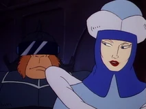 The angry queen confronts then and calls her guards; Lion-O responds by setting the distress signal for Panthro to spot. She once again tries to freeze the hero, but he stops the wicked beauty by letting out sparks from his sword. Her guards arrive and Snarf and Lion-O wonder how to escape, but luckily Panthro appears in his tank, smashes through a wall and escapes. The Arietta bird escapes and she and her guard presumably die when her palace crumbles.