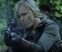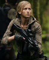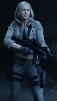 Rachel was the lone female member of a group of murderous mercenaries, led by the notorious Simon Vogel. The group was after whistleblower Liv Tanis, who is under the protection of the main protagonist, Jake Carter. Rachel had very little dialogue in the film, only speaking on two separate occasions. The first was in a phone conversation, but the second included Rachel directly confronting Jake. The confrontation ended badly for Rachel, as she was riddled with bullets from one of her partners due to being used as a human shield by Jake.