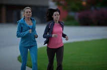 In the film's climax, Annie prepared to go stay at Mark's place after having reported Rachel to a detective after learning her true identity. But before she could, Rachel killed the locksmith Annie had hired before going to Annie's apartment and knocking her out with a hammer (doing so after Annie had found Mark's body under her bed). Rachel then took Annie to an abandoned building and duct taped her to another exercise machine, telling her she would let her go if she reached their goal of her losing 10 pounds. When Annie tried to sympathetize with Rachel for her childhood abuse, the psychotic trainer put a knife to her throat and claimed that her father was a great man who helped people. Annie managed to escape by strangling Rachel with the strings of the exercise machine and using her knife to cut herself free, but as she tried to find a way out of the building, Rachel attacked her with a pole and began strangling her, delusionally saying that she cared about her. Annie fought back by hitting her with a barbell, causing Rachel to fall and impale herself on a spike. Annie tried to help Rachel when she began apologizing, but as she did, Rachel grabbed her in another attempt on her life. But Annie finally subdued her by kicking a nearby post, sending a glass sheet falling onto Rachel that appeared to kill her. But the last shot of the movie showed a bicycle stopping as Rachel went jogging with Richard, possibly implying that Rachel survived and was stalking Annie again.