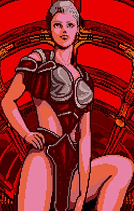 The Red Queen (レッド・クイーン) is a major villain in the PC Engine (1991) and Sega CD (1995) visual novel adventure game "Cobra II: Densetsu no Otoko" (コブラII―伝説の男― 寺沢武), also known as "The Space Adventure - Cobra: The Legendary Bandit".