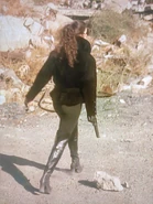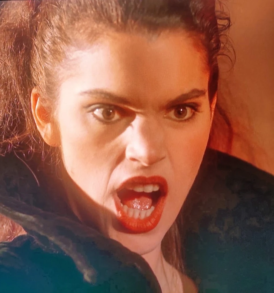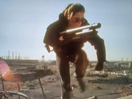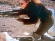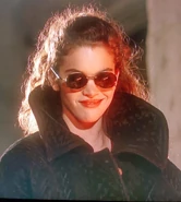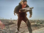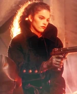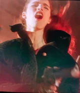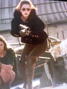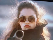 Rosaria (Jennifer Gatti) is a minor villainess in the scifi movie Nemesis (1992). She is part of a terrorist organisation who wants to get rid of the machines. She tries to hunt down the protagonist (who is a hybrid between man and machine) but fails to do so. Later she is shot by the protagonist when he locates her hideout.