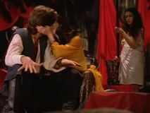 While Rumina was attempting to take a bath, Sinbad escaped from the bottle by crashing off the side of the table. When Maeve (Jacqueline Collen) comes to rescue Sinbad, Rumina tricks her by once again appearing as Sinbad. When the miniature Sinbad warns Maeve about the evil Rumina, it is too late. Maeve knocks her out and then begins draining the lifeforce out of her.