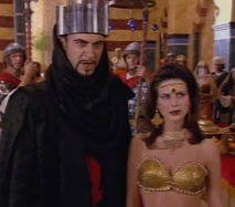 In the 1996 episode, "Double Trouble", Sinbad (Zen Gesner) and his crew sail into Basra, to retrieve a priceless treasure from its Sultan for the Caliph. The treasure is a sacred obelisk, said to have belonged to Ramses II of Egypt. Whoever owns it is believed to hold unlimited power.