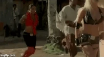 Sahira shows up at the resort posing as a tourist, and is seen in her hotel room by one of the good guys posing as a maid. Sahira asks the maid (who is actually a man dressed as a woman) to rub some suntan lotion on her. When he gets a little over zealous, she gives him a knee punch in his gut, and throws him on top of her bed.