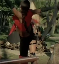 She next appears in a sexy red and black outfit, and gives the pirate leader a kiss. The pirates have captured Luciana (Luciana Salazar), who is working undercover for a secret anti-spy organization called Brigada Explosiva, and all girls group of mercenaries. They are torturing her while she is tied up on a table wearing a black leather bra and panties. When she escapes, Sahira and Luciana begin a large catfight. Luciana is able to knock down Sahira after a long struggle. However, Sahira once again gets up and kicks Luciana in the back as she is walking away. After a shorter fight, Luciana is able to knock her out with a strong blow to the face. Sahira, and all of the bad guys are rounded up. This is the last we see of Sahira, but it is assumed that she has been arrested and taken to the authorities.