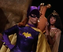 Becoming aware of the danger of the scrolls, Barbara Gordon (Yvonne Craig) changes to Batgirl and speeds by Batgirlcycle to the Gotham City Library. She is too late, and she tracks the monarch to his hideout. After she takes out two of Tut’s henchmen, Shirley uses a vase to knock Batgirl out from behind. The Dynamic Duo follows Batgirl’s trail at the library to Tut’s hideout. They rescue Batgirl, and promptly thrash Tut and his Tut-lings.