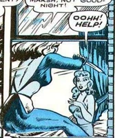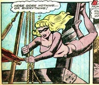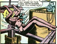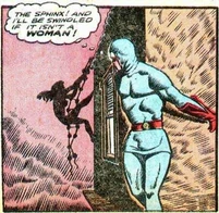 Sinister Sphinx in the villainess in the 1948 comics Blue Beetle #56.