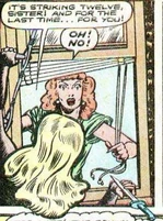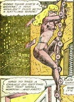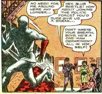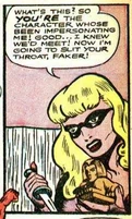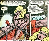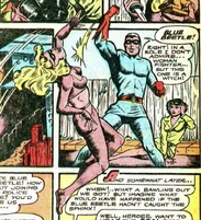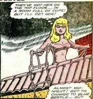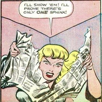 Her murders brought her to the attention of the Blue Beetle, his partner Mike, and his girlfriend, Joan Mason. Joan came up with the idea to create a fake crime scene attributed to the Sphinx by leaving a figure at the scene of the crime. Joan figured the Sphinx's pride would get the better of her and make the crook come out of hiding to confront the copycat. This plan was successful and Blue Beetle was able to apprehend the Sphinx though her true identity was never revealed.
