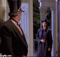 After turning on her boom box, she begins to strip out of her chaps to the Israeli folk song "Hava Nagila". The brothers are so happy about the song selection, that they begin dancing around. As a result, when Southern Comfort takes out her pistol, she is unable to focus in on them and misses wildly with her shots. She shoots vases of roses and statues instead.