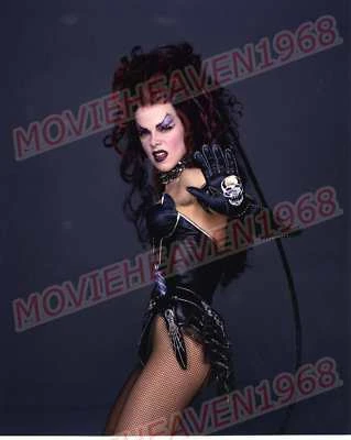 Spice is one of Two-Face's love interests, along with Sugar (Drew Barrymore). Spice tends to stay on Two-Face's sinister side; she has a cruel seductive nature, and her personality is the exact opposite of Sugar. Spice wears a black leather bustier with fishnet stockings on her legs and carries a whip. Spice has a porcelain type skin tone. She wears purple lipstick. She has a cute little mole on the right side of her face. She wears a spiked collar on her neck. She has red and purple highlights on her big bouncy hair. She has black heels and gloves on. Towards the end of the movie, she wears a black see through robe over her regular outfit. Her eyelashes are long and eyebrows are high up her forehead with purple makeup underneath. She's seductive, spooky, and behaves like a schoolgirl around Two-Face, and usually speaks in a seductive manner.