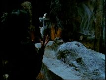 The Spider Demon is distracted by a Fairy floating over her face. Phoebe then kicked her to the ground, where a Wood Nymph attempt to vanquish her with a potion. However, the throw was off, and the Demon again morphed into a spider. This turns out to be her undoing, as she is squashed her to death by an Ogre. With her death, the webs encasing Piper were removed and the barrier blocking the entrance to her lair disppeared, allowing Leo to get inside and rescue Piper.