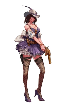 Sure Shot 6 Raina (sometimes translated as Reina) is a female ranger from Dungeon Fighter Online, like her fellow ranger Tyler. She is a well-endowed woman with a short bobbed cut dark brown hair and a rather athletic build with large breasts. She wears a purple Victorian minidress with a a brown leather belt and a white ribbon, a pair of fishnet stockings, a gun holster on her right thigh, a pair of purple high heels and a white fedora hat with a purple feather. She challenges the player when reaching the 73rd floor of the Tower of Despair