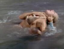 Dr. Katherine Vernon (Lenore Stevens) is jumped by Syrene, and a huge underwater catfight takes place. It looks like Syrene has the upper hand, but Katherine is able to escape. When Syrene engages in the fight again, Katherine is able to grab the sharks tooth necklace and choke out Syrene which results in her death. This ends any chance for the race of sea people to continue. They all march into the sea as Logan takes a blanket of pearls from Syrene's funeral pyre. Manuel the Barracuda (Vic Diaz) arrives and tries to double-cross the surviving pearl hunters. A fight breaks out and the case of pearls falls overboard.