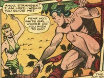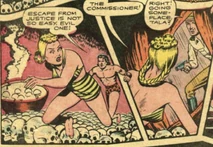 Back at Tanee's village, Commission Burns tells him that a white girl who is traveling with a band of natives, is exacting a weird avenging rite of bleaching the skulls of their enemies. Jo-Jo told him of his encounter, and the group set off to find her.