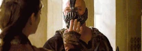 Batman presented Selina with the Batpod, and she muttered, "You're gonna wage a war to save your stuck-up girlfriend." Rallying an army of officers, Batman and the cops attacked Bane and his men in a huge melee as Miranda watched from the lobby of Gotham City hall. Batman and Bane fought each other in hand to hand combat. Batman avoided the power blows and managed to damage Bane's mask and caused him immense pain. The fight continued in City hall where Batman knocked down Bane.