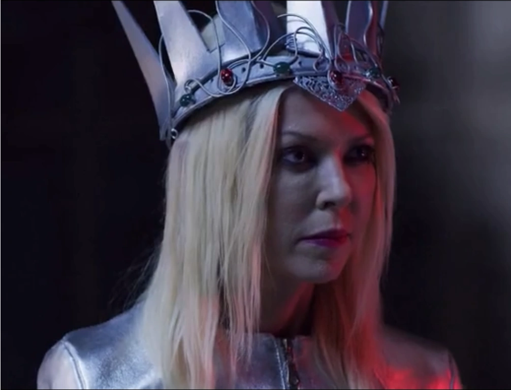 The Queen (Tara Reid) was the main villainess from 2018's The Last Sharknado: It's About Time, the sixth and final film from SyFy's Sharknado series (airdate August 19, 2018). She was the evil cyborg doppelganger of April Shepard (nee Wexler; also played by Reid)