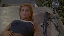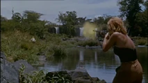 To get some dynamite, Slade's gang raided a village and killed a friend of Tarzan. Therefore he pursued them up a river to hunt them down. Nevertheless, Toni was not killed by the ape man, but accidentally by her beloved Slade, that's how: during the cause of the film, the villains captured Angie (Sara Shane), a friend of Tarzan. One of them got a conscience, and freed Angie. Toni, who noticed that, got quite angry about that. First, she shot after Angie, missing her, then she ran into the jungle, to tell Slade about the betrayal. Her lover in the meantime prepared a trap for Tarzan. He dug a pit, filled it with spiked bamboo, then covered it for camouflage. He just finished it and waited in hide, when Toni came running - she falls into the pit, spiked to death.