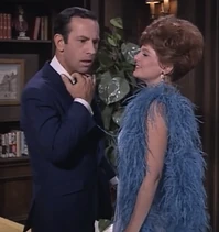 Next we see Tracy at her residence enjoying a swinger party. Victor Slade, the Head of KAOS for Washington, D.C. is also at her party and questions her of the plan to eliminate Agent Smart. She explains that she will use her poison lipstick and kissing him. She shows her ruthlessness by trying this out on Caine, one of the other KAOS agents who assisted in the fake kidnapping. Of course Caine falls to the floor dead.