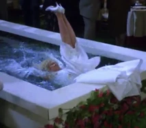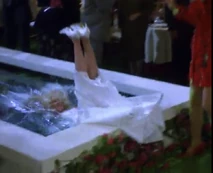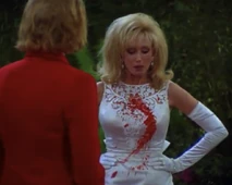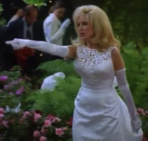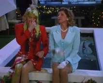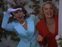 Just when they think nothing they planned was going right, a helicopter that Cybil had ordered arrived and hovered over the ceremony. It resulted in food and water being swept up and thrown all over the guests. Ladies fake hair blew off their heads, and Andrea's hair looked less than perfect. Cybill and Maryann looked on in glee as they had finally sabatoged the party.