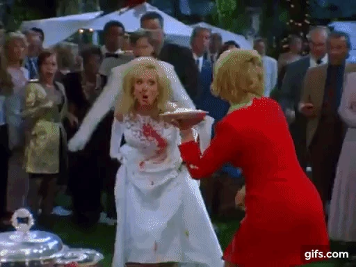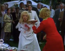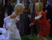When the helicopter left, Andrea called Cybill out in front of the ceremony, telling her that she ruined her wedding, and that it was her time to be a princess. This set off a major food fight as the two of them proceeded to throw, dump and smash each other with various items from the large reception table.