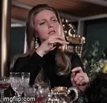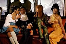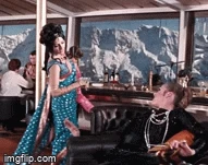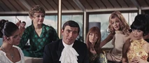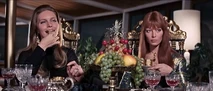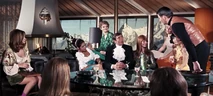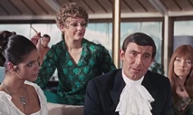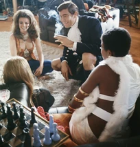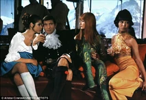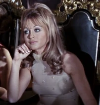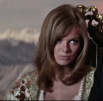 Sir Hillary Bray (George Lazenby) meets the girls in the living room of Piz Gloria and chats with them about genealogy and the college of arms. He then enjoys their company at the dinner table, as each of them dine on the food that they were was allergic to.
