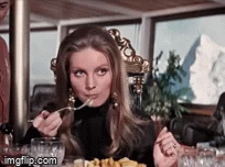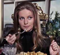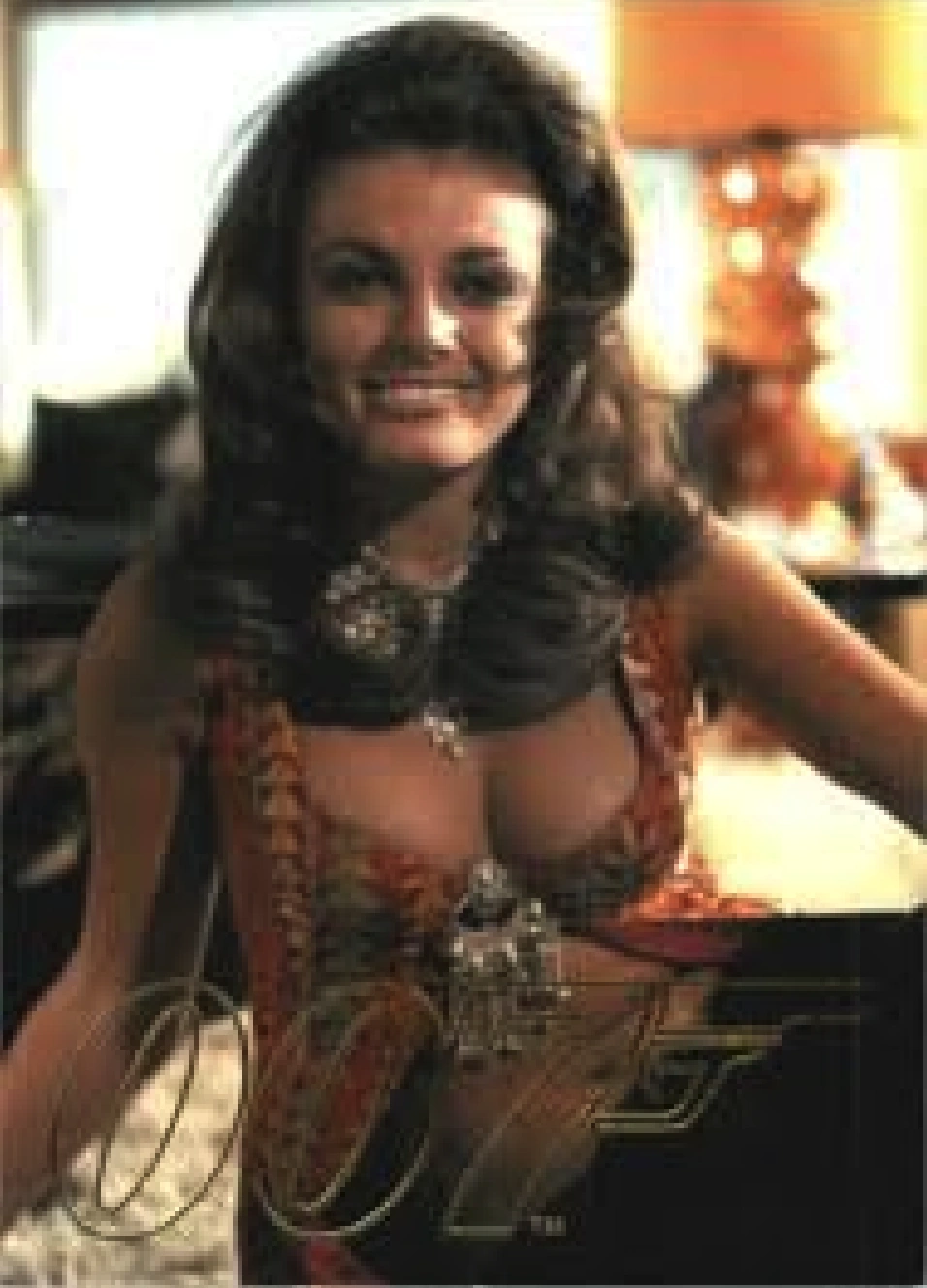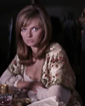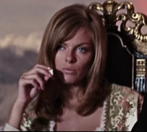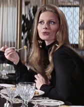 Nancy makes it clear that she like many of the other girls share a dislike for Blofeld’s second-in-command Irma Bunt. Continuing their discussion at the dinner table, Nancy is curious to know Bond’s background, especially his job as a genealogist. During the conversation, Nancy tells Bond that she is overcoming an allergy to potatoes at the clinic. However, she now adores them, and it is all she eats. The flirting continues between the two at the table and Nancy takes a keen interest in a book Bond is claiming to have brought with him to the clinic which includes pictures.