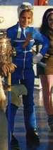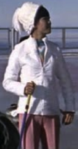 The Jamaican Girl (Sylvana Henriques) is a patient who is overcoming an allergy to bananas. She has a short black afro, and she has earrings that dangle several inches. Her white outfit has fur lined short sleeves, and is topped with a fur lined choker necklace. She has white boots that go up to her calves, and have fur that covers the top rim.