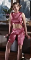 The American Girl (Dani Sheridan aka Sally Sheridan) is a patient who is overcoming an allergy to pork. She is a brunette girl, whose hair is gathered up in pigtail buns on the side of her head, like that of Princess Laia. She is wearing a shiny pink sleeveless outfit. The top is in the form of a midriff, and the matching pants are cut off above the knees.