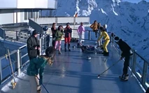 After romantic encounters with Ruby Bartlett and Nancy, Bond wakes up to enjoy a game of curling on the top deck of the snow-capped mountain getaway.