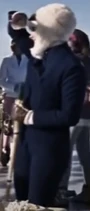 When Sir Hillary meets the girls on the observation deck for their game of curling, the English Girl is now dressed in a tan colored ski outfit. Her hair is now being worn down, and she has a pair of ski goggles resting on the top of her head.