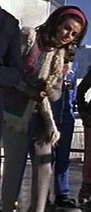 When Sir Hillary meets the girls at the observation deck for their game of curling, the Israeli Girl is dressed in with tan colored ski pants. She has a pink coat that is fur lined, and she has a pink hair comb in her hair pulling her hair back.