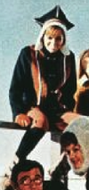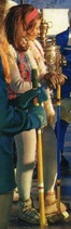 When Sir Hillary meets the girls on the observation deck for a game of curling, Helen is dressed in red ski pants, black leggings up to the knees, a black coat with rosemaling designs on the vest, and a pointed Norwegian folk winter hat.