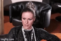 The English Girl (Joanna Lumley) is a patient, but it is unknown what her allergy is. She is a brunette who has her hair up tight in a bun. There is a white and gold jeweled crown gathering her hair in a bun, and she has several white necklaces that hang down on her long black sequined gown.