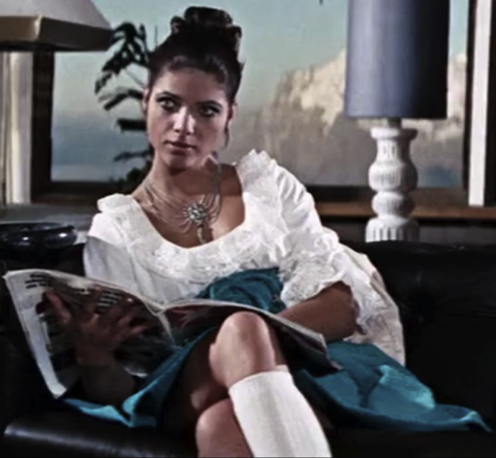 When James Bond infiltrates Blofeld’s clinic under the guise of genealogist, Sir Hillary Bray, Ruby is immediately attracted to him.