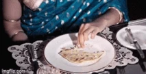 During the dinner, the Indian Girl dips her bread in lentils and eats them with her hand, which is considered polite.