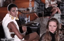 When Sir Hillary arrives at Piz Gloria, it is the Jamaican Girl who asks what his title of Baronet means. Ruby responds, that it is sort of “an inferior sort of baron”. The Chinese Girl responds, “How disappointing. During dinner, the Jamaican girl is eating nothing but bananas.