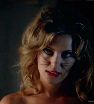 We first see Lily, as she is at the home of her friend Maddie (Monica Keena), getting ready to go to a wild Halloween party. Lily is putting on the finishing touches to her sexy kitty outfit by drawing the whiskers on her face. Her outfit includes a black leather corset and short black miniskirt. She has black boots, thigh-high fishnet stockings and a garter belt. In addition, she has kitty ears on as well as a tail and opera gloves.