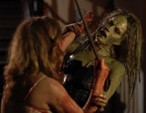 Lily has an interesting sexual encounter, when she seduces Jason. Jason resists her seduction, even when she removes her corset and proceeds to reveal her perfect breasts. Then for whatever reason, shoves her tube of lipstick through her nipple and then produces it out through her vagina. Later she has tentacles coming out of her boobs that wrap onto her victims.