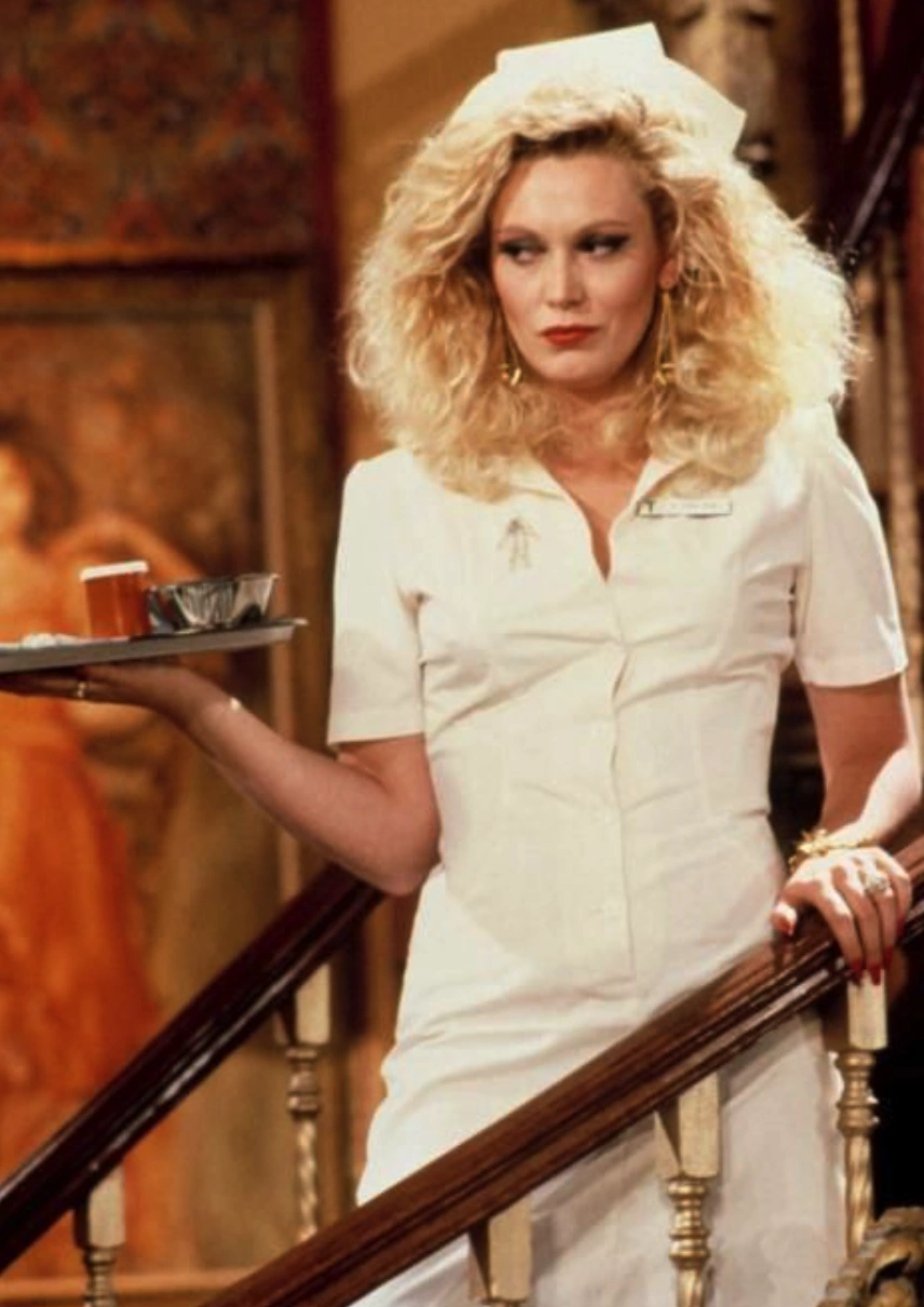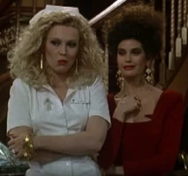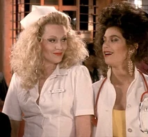 Montana, desperate to stop them, reiterates that she is pregnant with Jeffrey's child, but she is publicly ruined by Rose, with the help of vengeful Ariel Maloney (Teri Hatcher), who wanted Jeffrey for herself. Ariel Maloney appears as her character Dr. Monica Demonico, and she and Rose appear on the set saying that they worked for the Sex Change Clinic in Bethesda, Maryland. They reveal that it is impossible that Jeffrey could have impregnated his nurse, since before she came to our clinic, she was Milton Moorehead of Long Island. They then showed a high school yearbook picture of Milton. To this, Montana was completely humiliated, and went running off the set, screaming in horror. It was obvious to her that this ruined her career, and could no longer be taken serious as an actress. While Celeste, Jeffrey, and Lori win soap opera awards, Montana is relegated to performing dinner theater at Jeffrey's former venue.