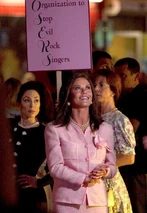 Patricia made the center of her husband's re-election campaign, to get rid of rock clubs, rock stars and the rock style of life in the city. She rallied a group of conservative and religious organizations to demonstrate in front of the rock club "The Bourbon Room", which was the site of an upcoming Stacee Jaxx concert.
