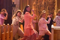 At the end of the film, Stacee Jaxx performs on stage with Drew Boley (Diego Boneta) and Sherrie Christian (Julianne Hough), where Patricia is in the crowd. Patrica has gone back to her rock style as she is wearing black leather and fishnet stockings.