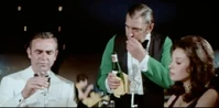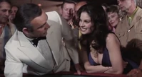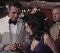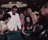 Plenty offers to help him with the dice, and proceeds to demonstrate her run of bad luck, losing him money on two straight rolls. However, Bond then takes over and quickly wins it back and much more. Plenty is quickly impressed with Bonds mastery of the lingo of the game, and makes the comment, “Say, you’ve played this before”. Bond responds by saying “just once”. Bond has won $50,000 and cashes out, and gives Plenty a $5,000 chip. Plenty is overjoyed with Bond’s generosity, and runs after him insisting that they should go for drinks.